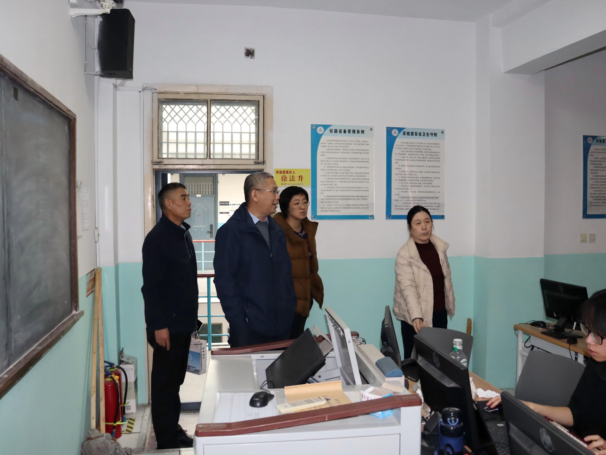 党委书记崔英静、院长孙元功带队对学院机房、各系部办公室及研究生学习室等重点场所开展全面细致的安全隐患排查工作。