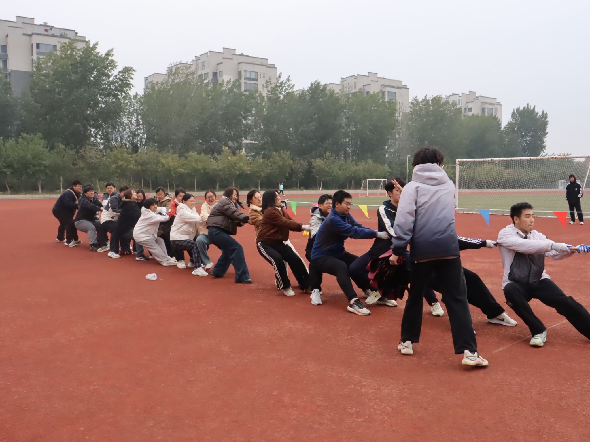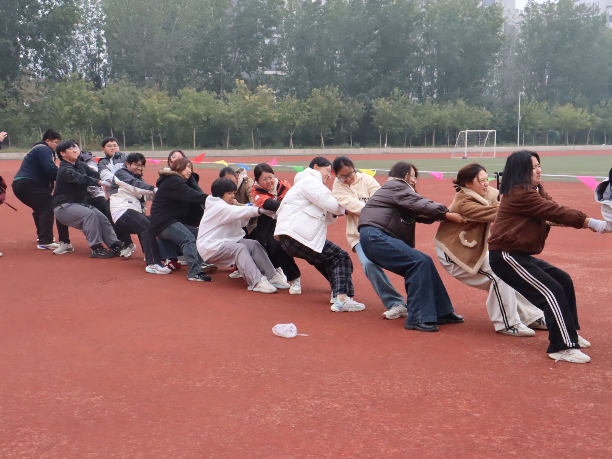 新生拔河赛在操场热烈开赛。我院新生代表队凭借坚韧意志与默契配合,一路过关斩将,最终斩获第四名,赢得荣誉的同时,也展现出我院学子的热血风采。